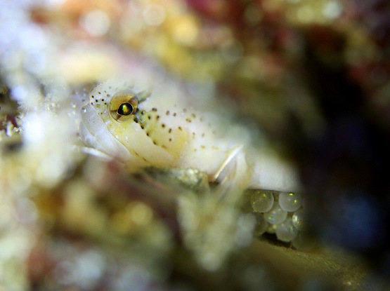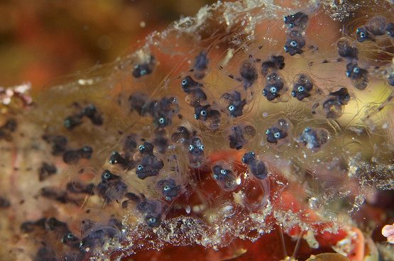 本日は多少の底揺れがありましたが2本とも船越で潜りました。1本目はダンゴの親と、ベニツケギンポの卵保護狙いで潜ってきました。親ダンゴは相変わらず撮影は難しいですが、今日も見ることができました。ベニツケギンポはハッチが終了したのかいなくなっておりました。天使のダンゴはさらに沢山増えいました。何度見ても可愛いです。