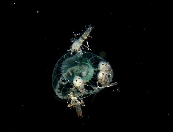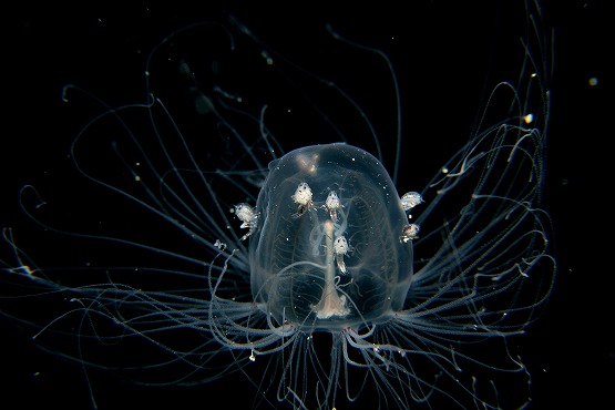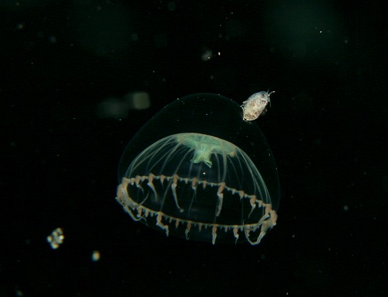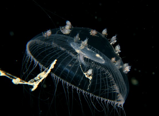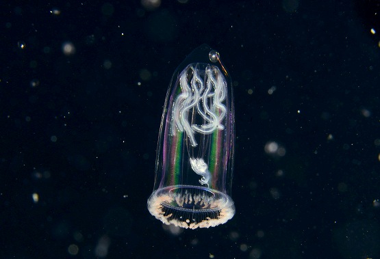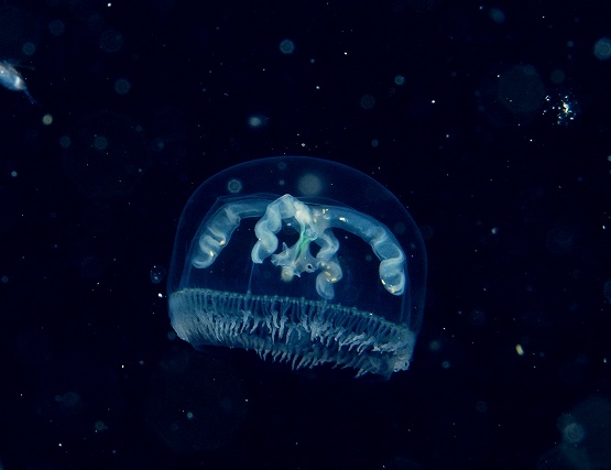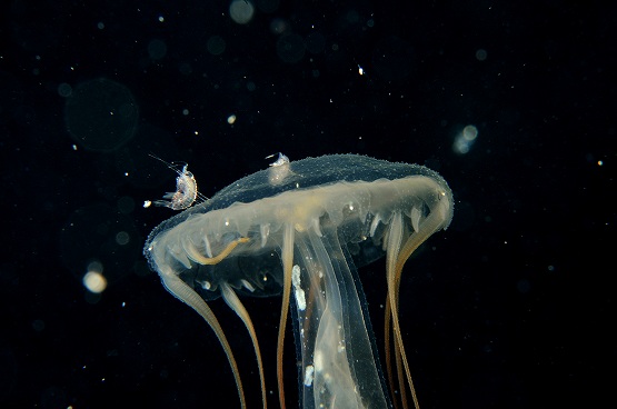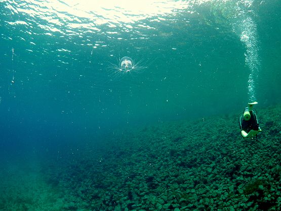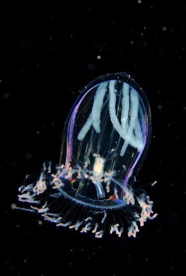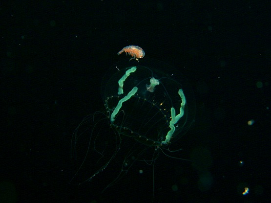 そして最近マイブームのツリガネクラゲを撮影していただきました。今日もライトをあてるといろんな色が出てとっても綺麗でした。クラゲの量がハンパなく多かったのですが、ちょっと揺れがきつかったので、浮遊系を探すにはちょっと酔いとの戦いでした。