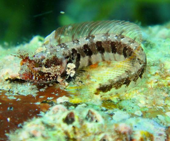 本日はファンダイブで船越潜ってきました。相変わらずクロエリギンポは絶好調!!威嚇しあったりメスに求愛したりととっても楽しいです。ヒレがとってもきれいですねー。