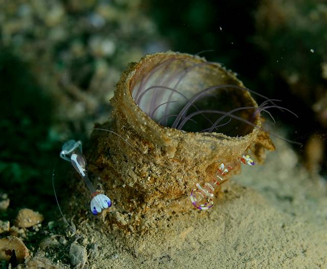 紫津浦では、先日見つけたミジンベニハゼのペアとイッテンアカタチ、そしてハクセンアカホシカクレエビ&オドリカクレエビ狙いでEN。イッテンアカタチは今日も絶好調。全身だして捕食活動もバンバン行ってくれてカッコよかったです。ミジンベニハゼは仲良く2匹で缶から顔をだしてくれていました。今船越も紫津浦も面白い!!