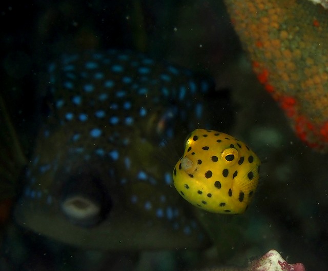 ミナミハコフグの幼魚とハコフグ