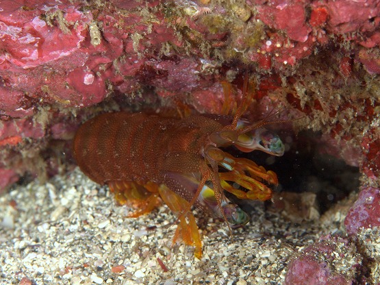 2本目は左の瀬に行き、こちらでもキンギョハナダイが見れました。カザリイソギンチャクエビやナガサキスズメダイ、そして今日も抱卵中のオトヒメエビを見ることが出来ました。 砂地では、タツノイトコの幼魚やクロイシモチの幼魚、ハナハゼの幼魚、そしてワケのわからない幼魚たちが沢山います。そして浅場では今日もミナミハコフグが3匹見れました。そしてムラサキウニにはムラサキヤドリエビが結構目に付きました。明日も海況良さそうです!