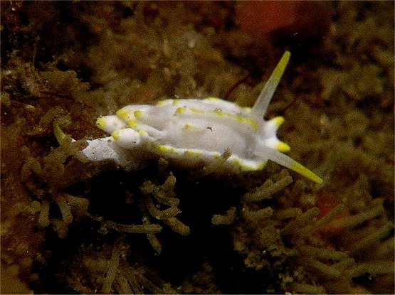 まずはダンゴもちょっと期待してトンネルへ。アカエラミノウミウシやサガミミノウミウシ、サクラミノウミウシ、スミゾメミノウミウシなどミノウミウシの仲間が増えてきました。レア物ではタマガワコヤナギウミウシやツルガチゴミノウミウシも見れました。その他ユビウミウシ、シロイバラウミウシ、テンロクケボリ、ヒロウミウシ、キイロウミコチョウなど見れました。 二本目は久々洞窟です。キンメモドキやツマグロハタンポが沢山群れてて季節感がおかしくなってます。ウミウシもリュウモンイロウミウシやフジイロウミウシ、サガミイロウミウシ、ミチヨミノウミウシ等の夏場多いウミウシが見れてちょっと驚きです。こちらでもサンカクウミウシやハクセンミノウミウシ、サキシマミノウミウシ等のレア物が見れた他、ゴシキモノウミウシやイナバミノウミウシ等も見れました。さーいよいよウミウシシーズン突入ですよ。