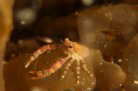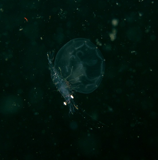 昨日も見れたのですが、オオタルマワシが今日も孵化してました。卵から出た状態でタルにくっついてる子たちを見ることが出来ました。 親がクルクルっとタルの中で回ると、子供達は外へ出て行きました。 今日はいろんなクラゲも見れました。クラゲ大好きなyuriさんがいろんなクラゲを撮影してくれました。そして今日もハダカゾウクラゲとゾウクラゲの仲間、オオトガリズキンウミノミ、エビ類の一種の幼生など見ることが出来ました。 ダンゴウオとオオカズナギの場所のみ着底して撮影していただきましたが、把握してるダンゴウオは右と左一匹ずつになってしまいました。もうちょっと真剣にさがさなければ。しかしながらどうしても目線が浮遊系にいっちゃいます。 |
