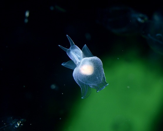 サルパ類は減ってきましたが、クラゲ類はまた増えてきました。ちょっとアカクラゲも増えてきてるので刺されないよう注意しなければいけませんが、その他のクラゲも増えてきたので面白かったです。フウセンクラゲによく似たヘンゲクラゲも出だしました。 ウリクラゲやフウセンクラゲも食欲旺盛でいろんなプランクトンを食べますが、このヘンゲクラゲはすごい食欲!!自分と同じくらいの大きさのサルパを丸飲みしていたり、オオタルマワシに喰い付いてる個体も見れました。浮遊系にもいろんな食物連鎖の過程があるのですねー。初めて見れました。 カメガイ系はやや減少してましたが新しくヤジリカンテンカメガイとマサコカメガイも見ることが出来ました。クリイロカメガイやハダカゾウクラゲ、オオタルマワシは今日も沢山見れました。ただダンゴウオが右でも左でも1匹づつしか見つけることが出来ませんでした。さてこの2匹いつまでいてくれるのだろう・・・。 |